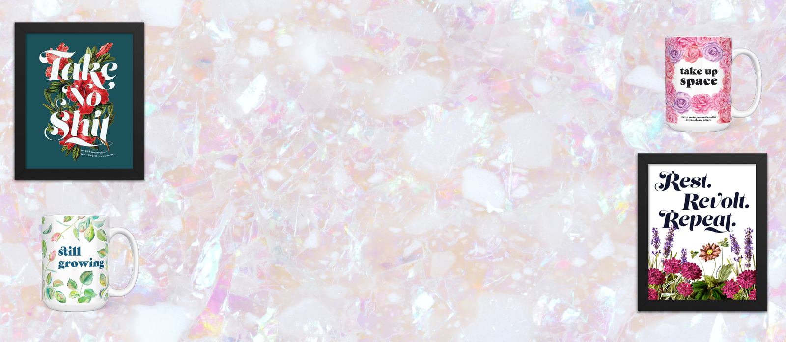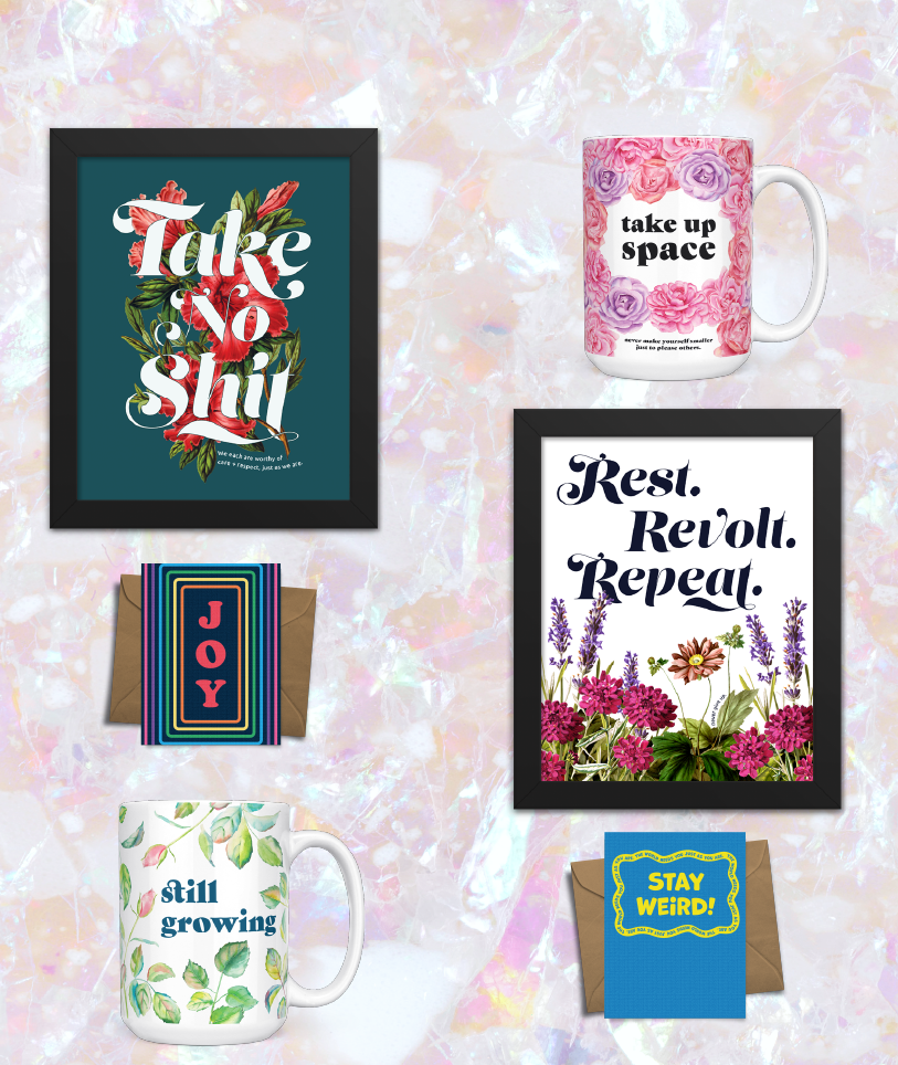 Hi, I'm glad you're here! My name's Loretta and I'm the founder and designer behind Radical Hearts Print Lab. I create these offerings with you in mind from my home studio with lots of support from my friends, cat, and superstar mom, Hope - not always in that order, of course!